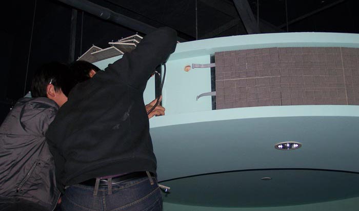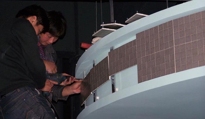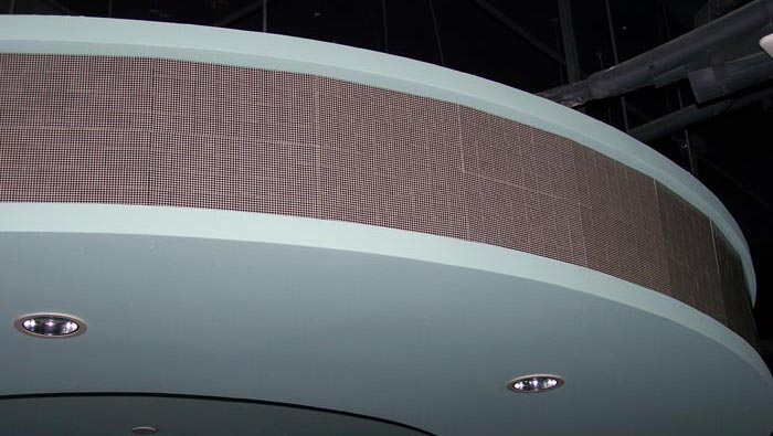 由于圆弧表面的弧度很大,客户对单元板之间的间隙有着严格的要求,对我公司来说也是一次挑战,经过设计部的前期规划设计,不断的调整方案,工程部精心的安装,在重重困难下,不负重望,顺利的完成了安装调试工作,向业主交上了一份完美的答卷!
