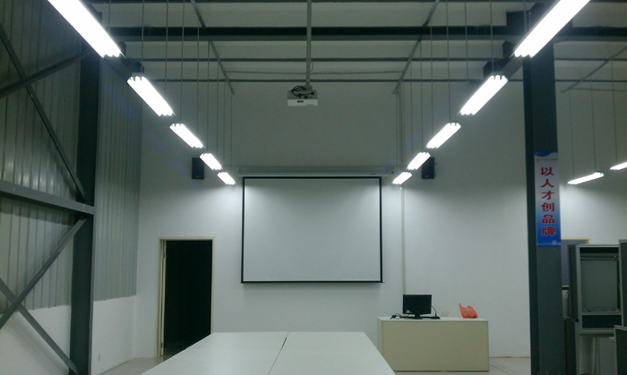 为满足学校教学要求,本项目为学校多媒体教室安装了蓝牙无线扩声音箱、电动幕布、投影机等,让老师爱上教课,让学生爱上上课。